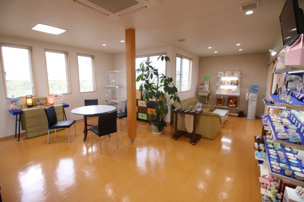 いつも優しい音楽が流れている明るく清潔な空間を作りましたので火葬中はゆっくりお待ちいただけます。またメモリアルグッズもたくさん取り揃えております。